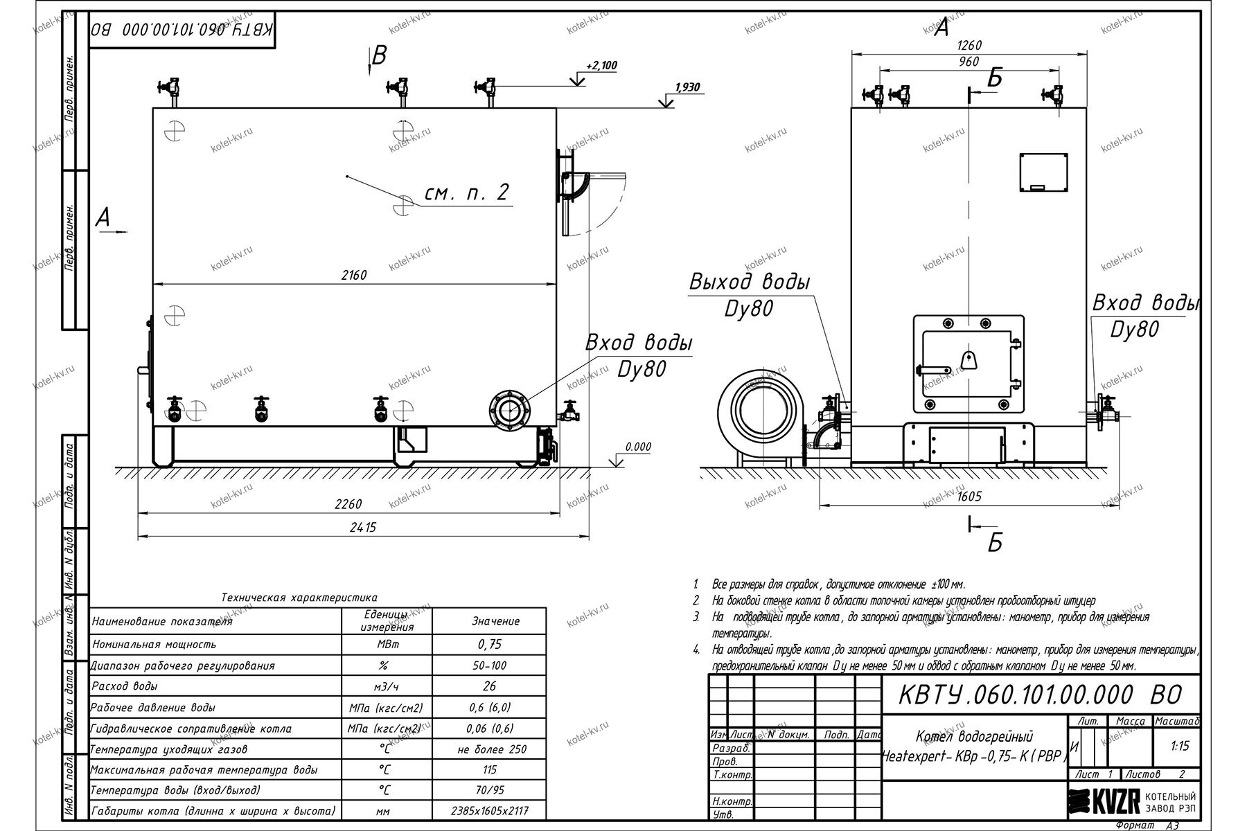 Чертежи котла с водяными колосниками 750 кВт